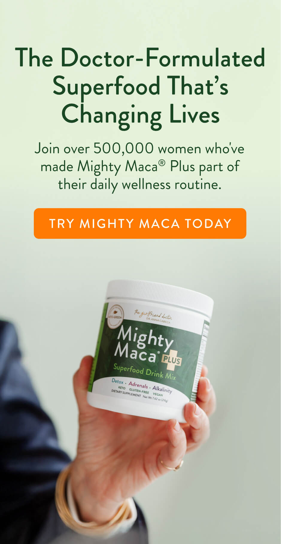 Developed by triple-board-certified OB-GYN Dr. Anna Cabeca, Mighty Maca Plus is a greens blend powered by over 30 superfoods. It supports natural hormone balance, energy, digestion and resilience to stress. Trusted by thousands of women worldwide.
